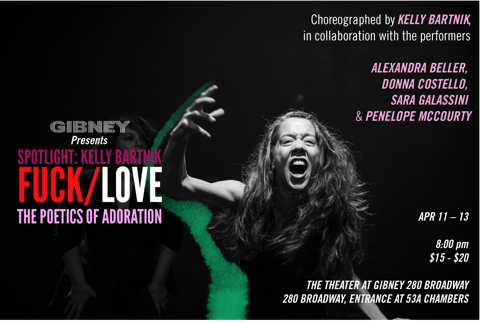 Fuck/Love is an exploration of the emotional disconnect between physicality and language. How do we communicate when words aren’t enough? How do emotions manifest in our bodies and what is the resulting effect of how we choose to name them? Utilizing forced physical exertion, duration, and the specific components of transitional elements, Bartnik exposes the places we keep most private, particularly relative to the extremes of emotion that exist between women in intimate relationships: overwhelming desires, misguided expectations, sexual release and comfort, idolization, and the poetics of adoration.